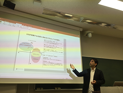 説明会前半はセミナー形式で、「データサイエンティストはどんな会社で、どういった仕事をしているのか」「データサイエンティストになるためには、どんなスキルを身につければよいのか」など、データサイエンス業界の全体像をイメージいただける内容をお伝えしています。