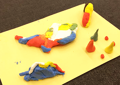(2)粘土ワーク:研修の振り返りとして、直感的に粘土で造形をつくるワーク