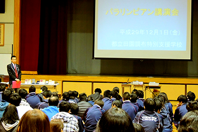 12月1日、東京都立田園調布特別支援学校にて、パーソルサンクス株式会社の木村 雄哉が講演を行いました。木村はロンドンパラリンピック陸上1,500m(知的障がい)に日本代表選手として出場した経歴を持ち、自身の競技人生を通じての「スポーツの素晴らしさ」や「仕事とスポーツの両立」について、集まった生徒に話しました。