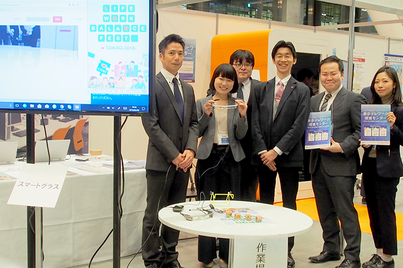 「東京テレワーク推進センター」は、「ライフ・ワーク・バランスフェスタ東京2018」で、最新の情報通信技術を使って簡単にテレワークが体験できる「テレワーク体験コーナー」を設置。飯田橋のセンターでも人気の「スマートグラス」を来場者に体験してもらいました。