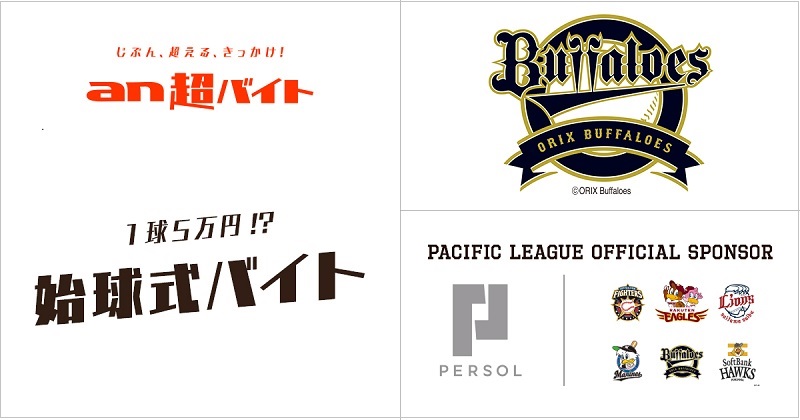 パーソルキャリア株式会社が運営するアルバイト求人情報サービス「an」は、思わず挑戦してみたくなるような「an超バイト」の新企画として、8月9日(木)18:00から、京セラドーム大阪にて行われる、オリックス・バファローズvs埼玉西武ライオンズの試合で、始球式を行っていただく「始球式」バイトを1名募集します!