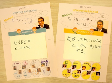 「なりたい仕事につくには?」を議題にした「こどもPERSOL会議」での議決案は、「無理をせず努力をする」「失敗してもいいからとにかく一生懸命やる」でした。