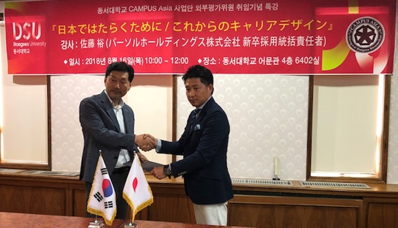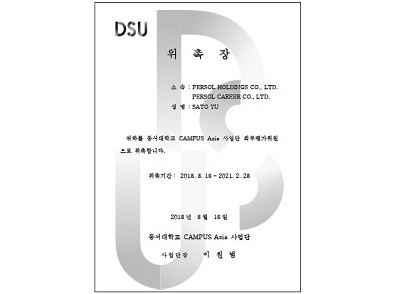 パーソルキャリア株式会社の佐藤 裕が、日本と韓国の学生に対する高い影響力に加え、企業の求める人材像を熟知し、大学でのキャリア教育が可能な人物として評価され「CAMPUS Asia(キャンパス・アジア)※」の外部評価委員に選出されました。8月16日に韓国の釜山にある東西大学校で式典に出席し、委嘱状の授与が行われました。