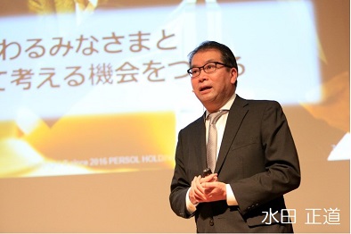 パーソルホールディングス株式会社 代表取締役社長 CEOの水田 正道の挨拶の後、基調講演と先進事例紹介、テーマ別セミナーが行われました。