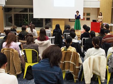 講師は、NPO日本パーソナルカラー協会の認定講師であり、「二度見美人クリエイター」として今、注目のさやま あやこさん。32名が参加する大盛況のセミナーとなりました。