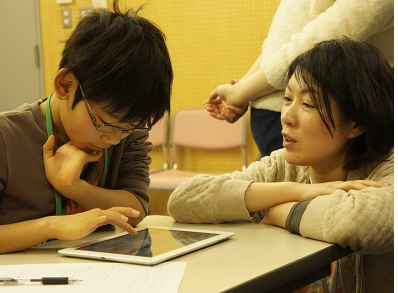 1日目は、小学1年生から6年生を対象に、タブレットを使用しHour of Code※の教材を利用してのプログラミング授業を行いました。