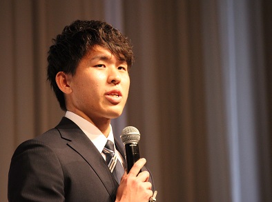 はじめに発表したのは、「リクルーティングセグメント」の前川 優太さん(写真)。続いて、「ITOセグメント」の木村 麻衣子さん、「エンジニアリングセグメント」の大井 裕貴さん、「派遣・BPOセグメント」の森田 伊万里さん、そして最後に「コンサルティング/リサーチ/研修/その他」から山本 蓮さんと、それぞれが心に抱く想いを熱く語りました。