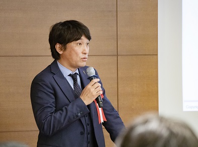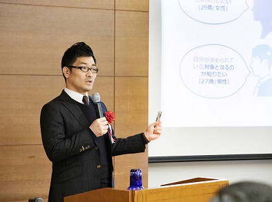 大都市圏の若者と地方企業とのマッチングを促進するシンポジウムで、社員が講演。