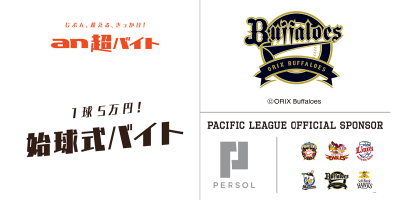 パーソルキャリア株式会社が運営するアルバイト求人情報サービス「an」は、思わず挑戦してみたくなるような「an超バイト」の新企画として、6月2日13:00から京セラドーム大阪にて行われる「パーソルDAY オリックス・バファローズvs北海道日本ハムファイターズ」の試合で、始球式を行っていただく「始球式バイト」を1名募集します!