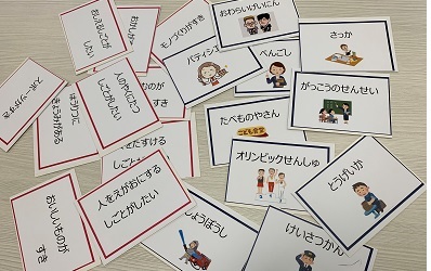 丸の内でのお仕事体験は、「職業マッチング」。10枚ずつ用意された「仕事を探している人の好きなことや興味があることが書かれたカード(A)」と、「人を必要にしている職業が書かれたカード(B)」からカードから良いと思う組み合わせを考えて、1枚ずつ選ぶというもの。今回は、男の子チームと女の子チーム、全4チームに分かれて行いました。中でも、「面白い!」と大きな拍手を得たのは、小学1年生の男の子チーム。Aのカードから「人を助ける仕事がしたい」を、Bのカードから「すいえいせんしゅ」を選び、その理由を「おぼれた人を助けることができるから」と発表しました。