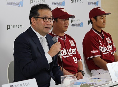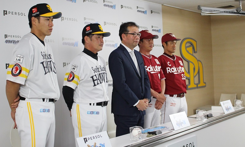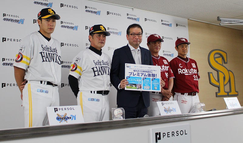 会見には、パーソルホールディングス株式会社 代表取締役社長 CEOの水田 正道、福岡ソフトバンクホークスの工藤 公康監督と柳田 悠岐選手、東北楽天イーグルスの平石 洋介監督と銀次選手が出席しました。