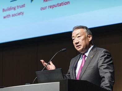 1つ目の基調講演では、武田薬品工業の平手氏が登壇。平手氏は、2010年に武田薬品工業に執行役員として入社した後、同社の中国事業の再構築を行い、現在は本社機能群の国際化を目指し、対外折衝等を統括しています。「変革の時代における企業経営のあり方」というテーマで、ご自身のこれまでの経験を交えながら、武田薬品工業の世界戦略とグローバル経営におけるチャレンジについてお話をいただきました。