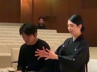体験を終えた後、参加者は2回鑑賞した「羽衣」を、再び鑑賞しました。ストーリーの理解だけでなく、体験を通じてどのように作品の見方や感じ方が変わったかを参加者同士で共有したり、また、宝生流シテ方の女性能楽師 武田 伊左先生への質疑応答を通じて、能への理解や、自分が見て感じたことへの考察を深めていきました。