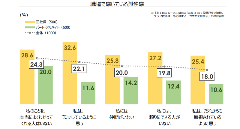 小林:はい。職場に外国人同僚が少ない正社員の場合は特に孤独感がより強く、「私は孤立している」と思っている人が30%以上もいます。そして、その孤独感がパフォーマンスや継続就業意向に悪影響を及ぼすことも分かりました。
