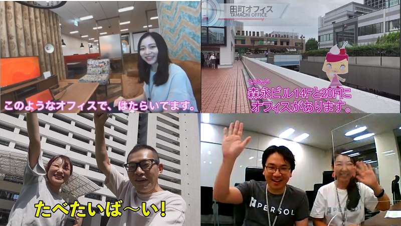 パーソルグループの全国のオフィスを、事前に撮影したVTRをもとに紹介しました。このVTRは、実際にそのオフィスではたらく社員が収録を実施。また、動画の編集は、パーソルグループの社員同士が集まって交流ができるコミュニティ「みんなの部活」の一つである「YouTu部」のメンバーが行いました。