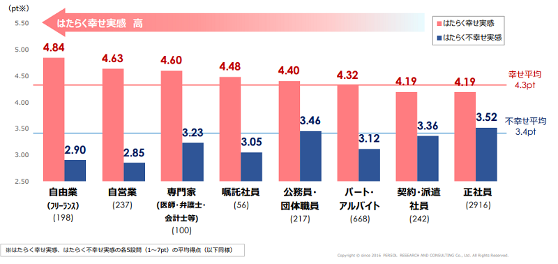 ――今回のプロジェクトでは、「自由業」「フリーランス」の方が「会社員」よりも幸福度が高いという結果もありました。