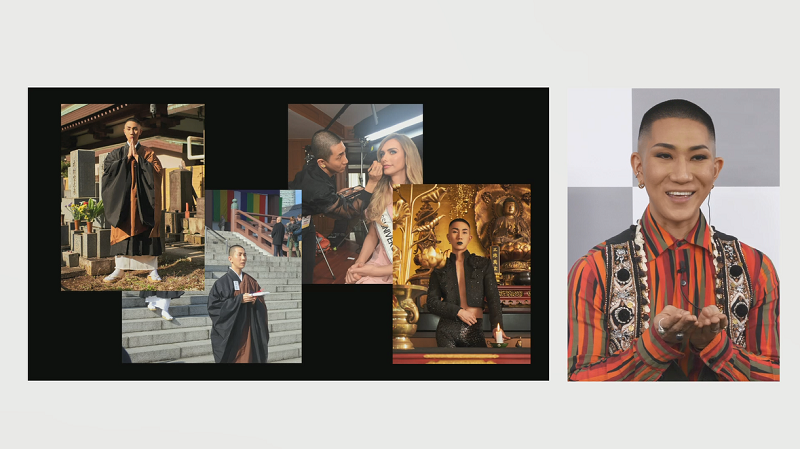 LGBTQ(性的マイノリティー)の一員である自らの体験を踏まえ、メイクアップアーティストであり、僧侶であり、LGBTQでもある唯一無二の視点で発信する「性別も人種も関係なく皆平等」というメッセージを伝えるため、ニューヨーク国連本部UNFPA(国連人口基金)、米イェール大学、早稲田大学、慶應大学、増上寺などで講演を行う。著書に『正々堂々私が好きな私で生きていいんだ』がある。