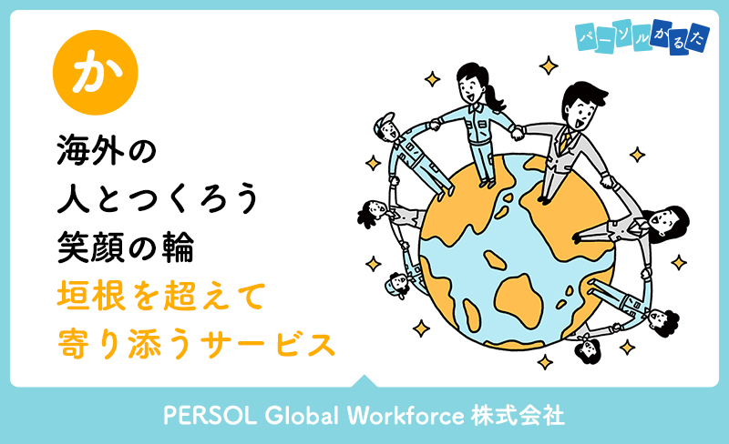 “Work, and Smile” Decent work for everyone――というメッセージを掲げているPERSOL Global Workforceは、外国人材活用のための総合コンサルティングを行っている会社です。みんなに満足できる仕事を提供し、“笑顔の輪”を世界に広げていくことをミッションにしています。