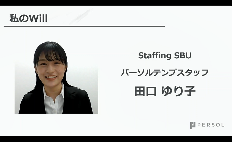 パーソルテンプスタッフ新入社員の田口 ゆり子です。