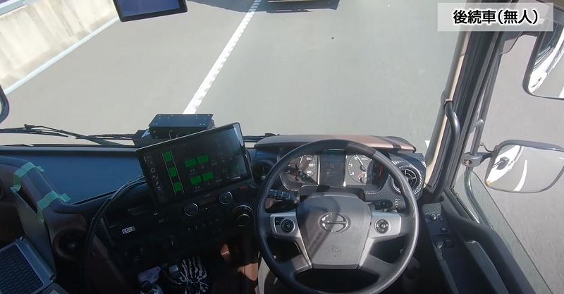 「高速道路におけるトラックの後続車無人隊列走行技術を実現しました②走行時の様子」(経済産業省YouTubeチャンネル)を加工して作成