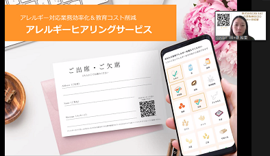 最終選考を受けるスタートアップ企業。写真は、無事選考を通過した、アレルギー情報のヒアリングシステムを提供する株式会社CAN EAT(2019年設立)