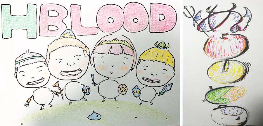 林のパートナーが描いてくれた家族の似顔絵(左)と、「ありがとう」と描かれた絵(右)。「このイラストを見ると元気が出るので、スマホで写真を撮りちょっとパワーが欲しいなという時にいつも見ています」