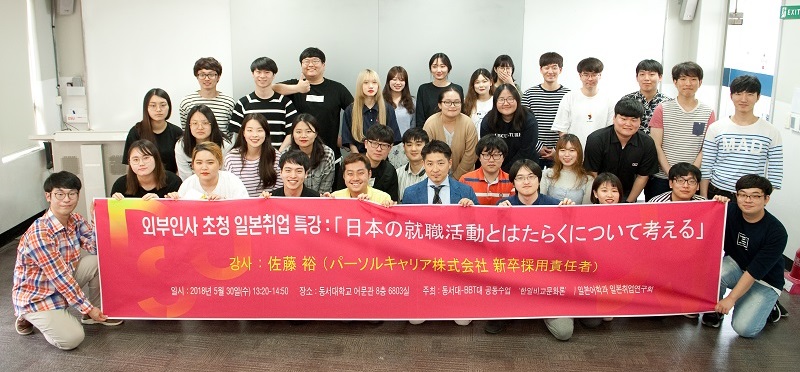 パーソルキャリア株式会社の社会貢献活動である若年層向けキャリア教育支援プログラム「CAMP」は、5月30日、韓国の釜山にある東西大学校※で「日本の就職活動とはたらくについて考える」と題した90分のイベントを開催しました。当日の学生参加者は33名。講演は、パーソルキャリア株式会社で新卒採用部の責任者を務める佐藤 裕が行いました。